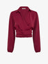 Einfarbiges, satinartiges Wickel-Crop-Top - Bordeaux